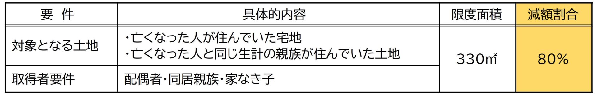 ☞例2のように、限度面積を超えた土地については限度面積迄特例の適用がされます。特定居住用は330㎡まで80%の評価減となりますので、利用が出来る場合は非常に有効な税制特典となります。