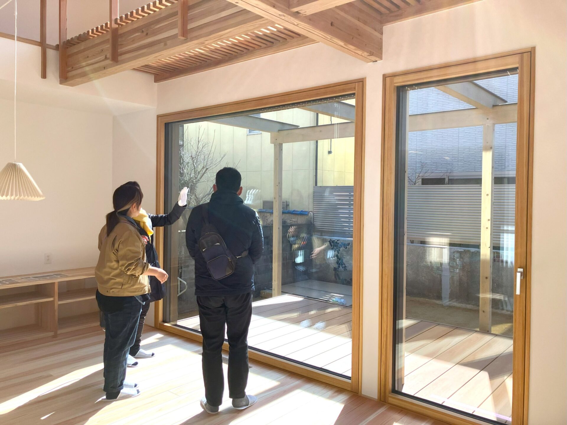当日は天候にも恵まれ、陽ざしがたっぷり差し込む建物内を、その高い性能を体感いただきながらのご案内となりました。