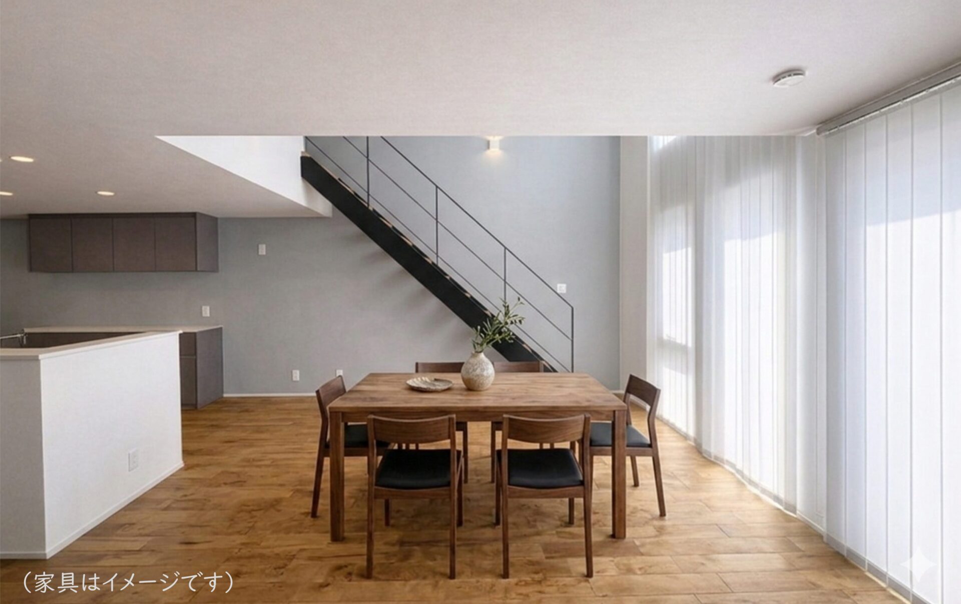 本住宅は、気密性能を表すC値※ (相当隙間面積)が0.20㎠/㎡と非常に優れた数値を達成しています。これは、建物全体の隙間を集めても 約22.4㎠(直径約5.3cmの円程度) にとどまり、高い施工精度が確保されていることを示しています。 また、断熱等級6の住宅は、冬季でも室温が概ね13℃を下回らないよう設計されており、ヒートショックのリスク軽減に貢献します。 デザイン性に加え、快適性と健康面での安心を兼ね備えた住環境を実現した住宅となっています。
