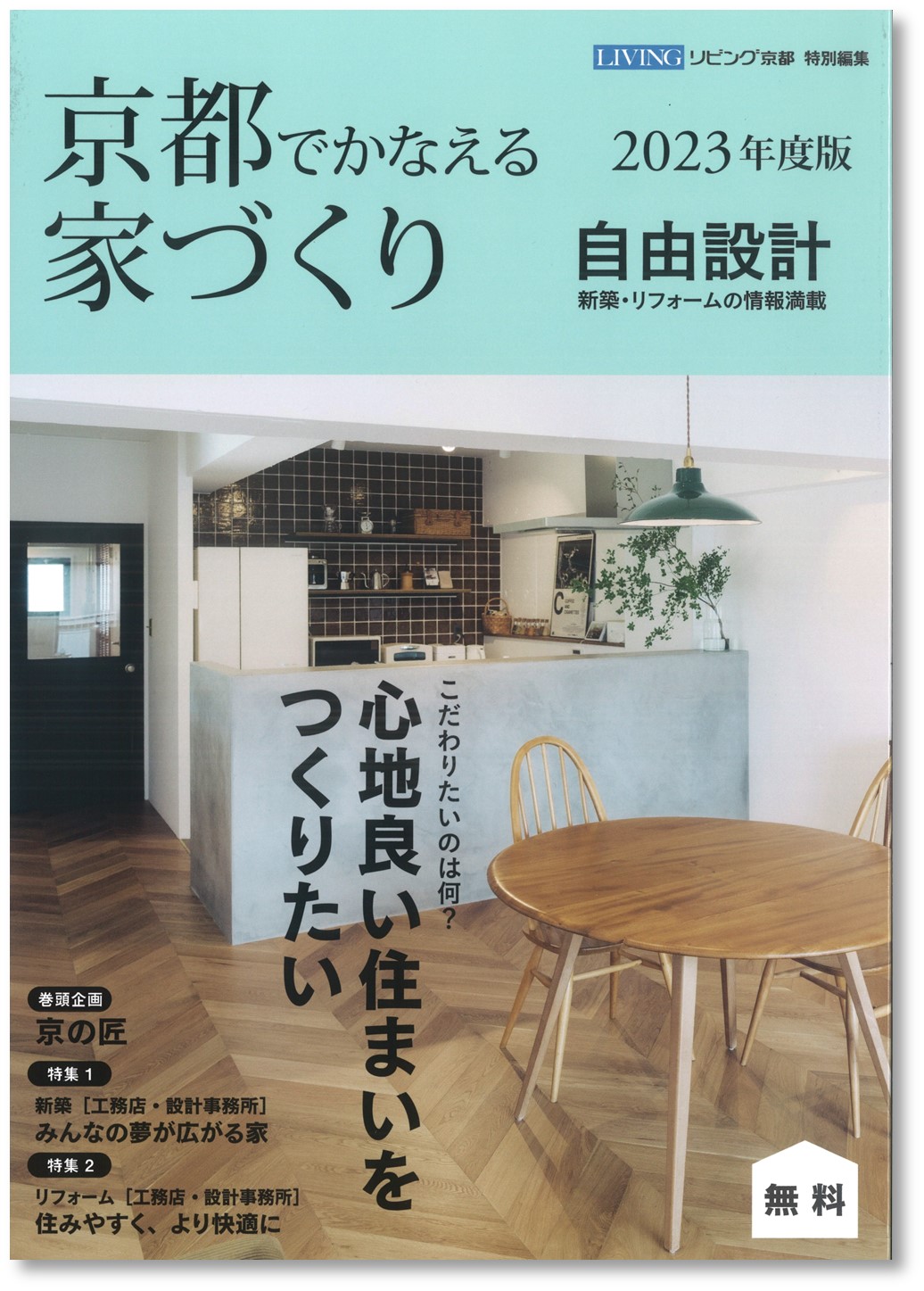 『京都でかなえる家づくり』は、京都リビング新聞社が発刊している無料の住宅本。5月31日に最新の2023年版が発刊され、弊社の記事が、巻頭企画「京の匠」(p.13)、特集1「新築」(p.54~)、特集2「リフォーム」(p.140~)に掲載されています。
