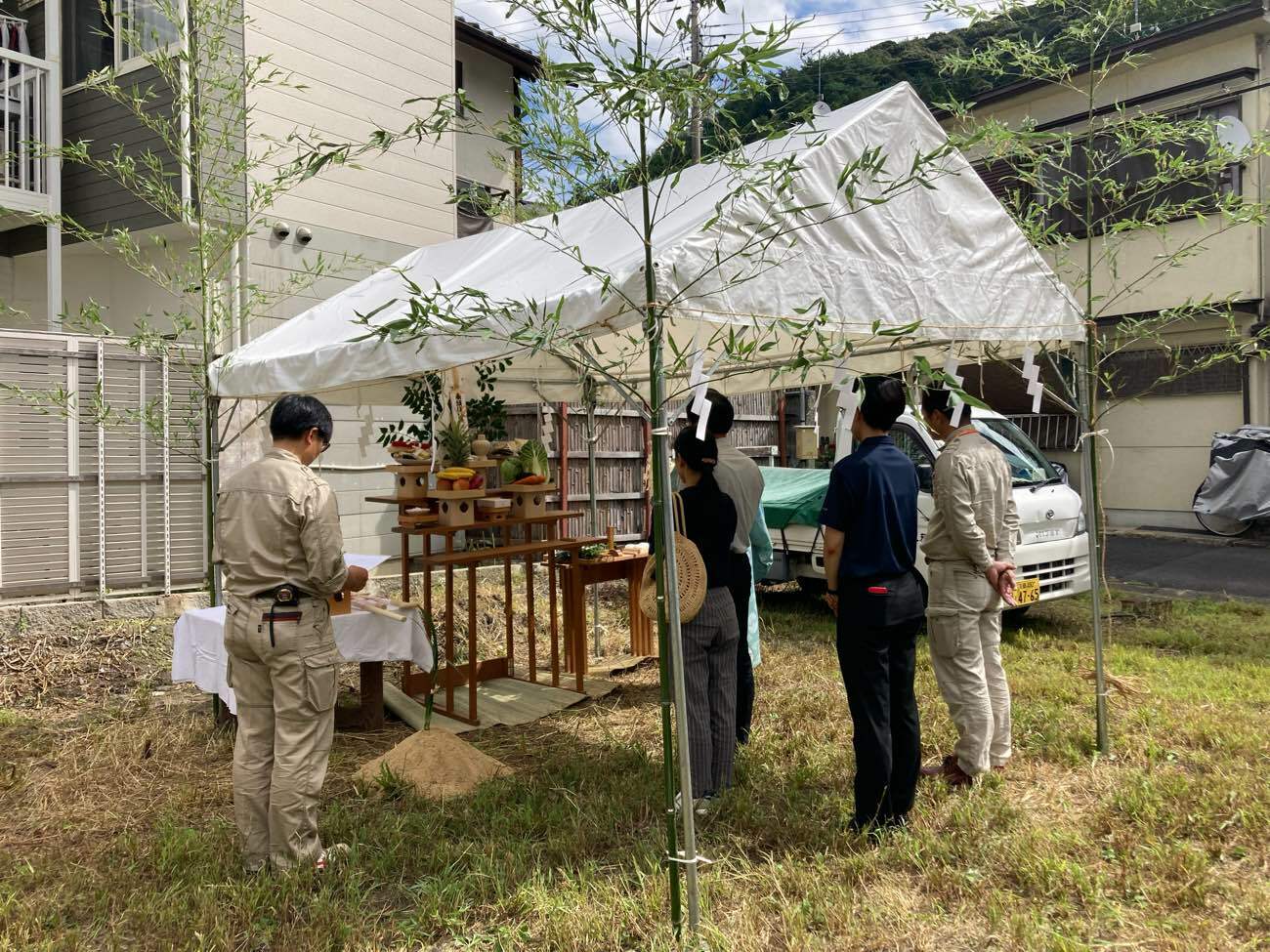 1棟目は、伏見区で建築中の新築工事(令和5年8月~)。 敷地面積約273 ㎡(約 83 坪)の土地に、木造 2階建て、延べ面積約 147 ㎡(約45 坪)の建物を新築中。吹抜が設けられた開放的なLDKや豊富な収納スペース、考え抜かれた生活動線など、魅力的なプランとなっています。